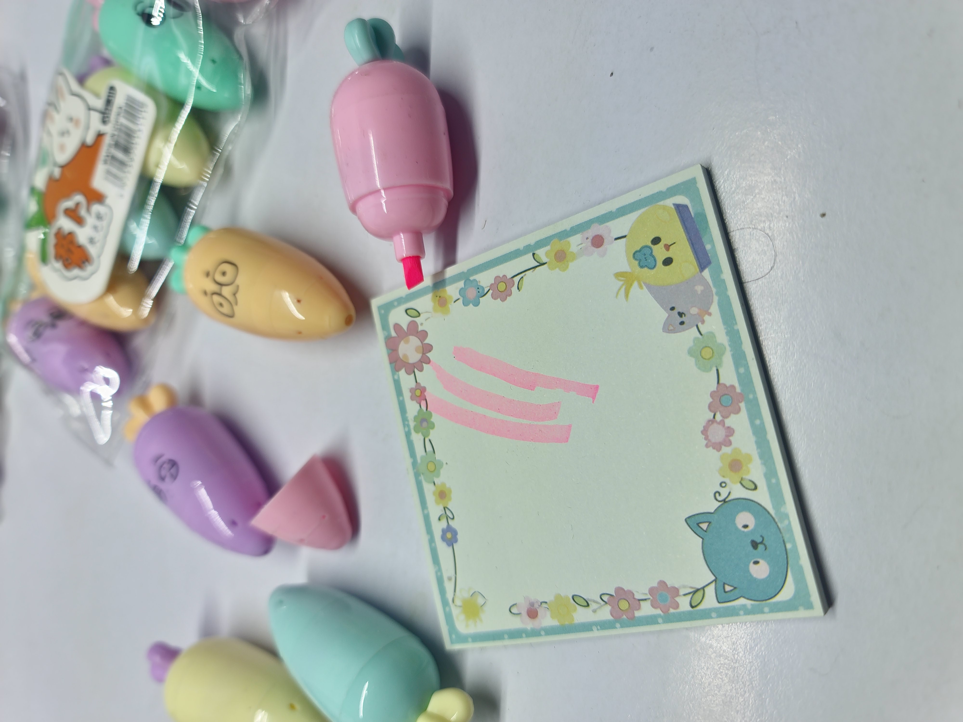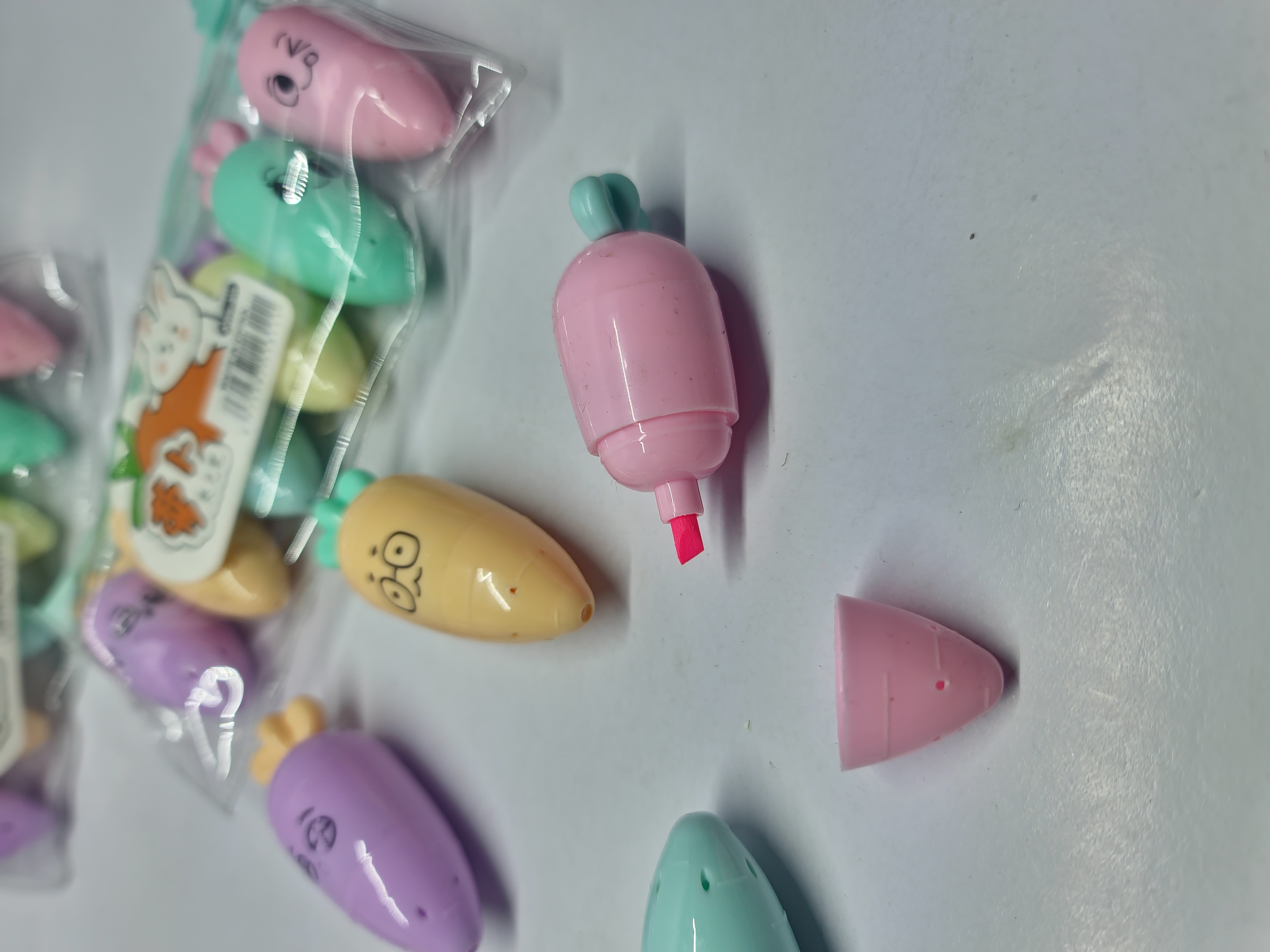 هایلایتر ۶ رنگ طرح هویج رنگ های پاستیلی با توناژ ملایم ک مانع اذیت شدن چشمتون میشه بسته بندی زیپ کیپی